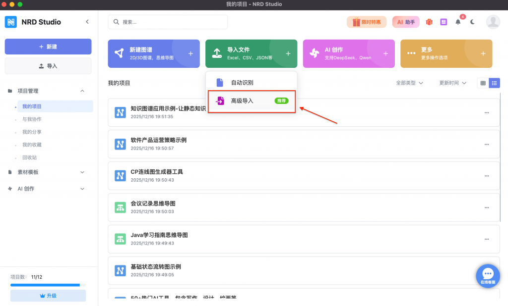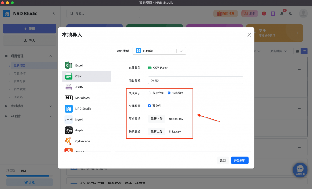 然后,通过NRD Studio 高级导入功能,依次上传选择两个文件。